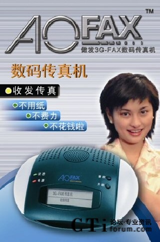 傲發(fā)3G-FAX也是唯一一個(gè)擁有全系列電子傳真機(jī)系列產(chǎn)品的品牌,產(chǎn)品包括免費(fèi)使用的傲發(fā)3G-FAX傳真軟件A10、單電腦使用的數(shù)碼傳真機(jī)A20、4用戶環(huán)境的網(wǎng)絡(luò)傳真機(jī)A30、軍警使用的軍用傳真系統(tǒng)A50、政府公安部門(mén)使用的多路傳真群發(fā)系統(tǒng)A80X-GA、不限用戶數(shù)目的網(wǎng)絡(luò)傳真機(jī)A60、1至2線的大眾型傳真服務(wù)器A801和A802,2至256傳真線路多種規(guī)格的專業(yè)型傳真服務(wù)器A80X、跨區(qū)域大型公司使用的集團(tuán)傳真系統(tǒng)和行業(yè)解決方案等。