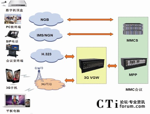 鑒于傳統(tǒng)視頻會(huì)議只能在固定地點(diǎn)、專用線路,通過(guò)專用設(shè)備召開(kāi)語(yǔ)音和視頻會(huì)議的局限性。3G移動(dòng)視頻會(huì)議解決方案實(shí)現(xiàn)了將會(huì)議拓展到整個(gè)互聯(lián)網(wǎng)和移動(dòng)網(wǎng)絡(luò),用戶隨時(shí)隨地可以使用3G手機(jī)和PC,通過(guò)互聯(lián)網(wǎng)、移動(dòng)網(wǎng)絡(luò)即可便捷地接入到現(xiàn)有會(huì)議系統(tǒng)中,真正實(shí)現(xiàn)跨越地域、空間的全方位會(huì)議。