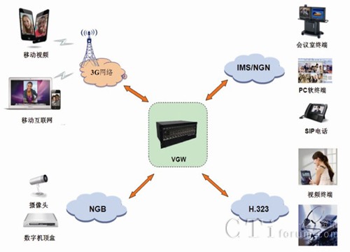 艾諾通信 NetFidelityTM系列視頻網(wǎng)關VGW應用于3G、IMS、NGB等異構網(wǎng)絡之間,提供信令互通和音視頻媒體轉換功能,實現(xiàn)移動終端、PC終端以及機頂盒“三屏”融合應用。
