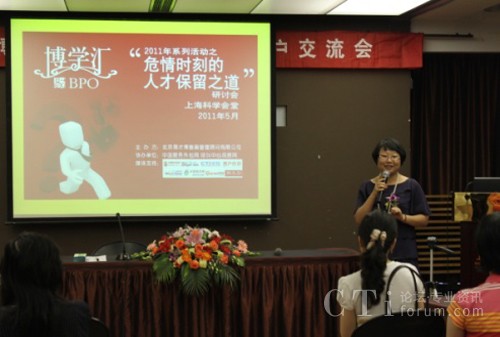 CTI論壇(ctiforum)6月3日消息(記者 張潔):2011年5月31日下午,上海科學(xué)會(huì)堂思南樓九層賓客盈門(mén),勝友如云。易才博普奧“博學(xué)匯”系列活動(dòng)之四“危情時(shí)刻的人才保留之道”研討會(huì)在輕松愉悅的氛圍中拉開(kāi)帷幕。本屆“博學(xué)匯”以“人才保留”為主題,邀請(qǐng)了業(yè)內(nèi)權(quán)威專(zhuān)家及其資深從業(yè)者就人才保留這一話(huà)題展開(kāi)一系列探討。會(huì)上分別從學(xué)術(shù)觀點(diǎn)、呼叫中心、人力資源、服務(wù)外包等諸多領(lǐng)域來(lái)探討人才保留的種種新途徑、新方法。