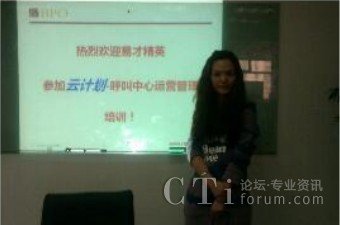 2012年3月16日作為“云計(jì)劃”第一期培訓(xùn)班在北京正式啟動(dòng),獲得了就職于各呼叫中心項(xiàng)目的易才博普奧一線坐席員工的廣泛關(guān)注和踴躍的報(bào)名。經(jīng)過“云計(jì)劃”入門培訓(xùn)資格的嚴(yán)格篩選,最終共有來自藝龍、樂淘、用友等項(xiàng)目的9名優(yōu)秀員工正式入圍,成為第一期“云計(jì)劃”成員。在今后的一段時(shí)間里同易才博普奧資深培訓(xùn)師一起學(xué)習(xí)一些列的專業(yè)課程,豐富自身在呼叫中心行業(yè)的專業(yè)知識,并走上易才博普奧構(gòu)建的職業(yè)晉升通道!