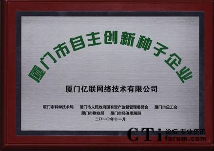 根據(jù)國家科技部、國務(wù)院國資委和全國總工會(huì)三部委制定的“創(chuàng)新型企業(yè)試點(diǎn)工作實(shí)施方案”和廈門市“技術(shù)創(chuàng)新引導(dǎo)工程實(shí)施方案”具體要求,市科技局、市國資委、市總工會(huì)、市財(cái)政局、市經(jīng)發(fā)局聯(lián)合開展了2010年廈門市自主創(chuàng)新示范、試點(diǎn)、種子企業(yè)評選工作。經(jīng)專家評審和市五部門聯(lián)合審核后,廈門億聯(lián)網(wǎng)絡(luò)技術(shù)有限公司(以下簡稱億聯(lián))憑借科技、環(huán)保的產(chǎn)品和強(qiáng)大的研發(fā)實(shí)力獲得了廈門市自主創(chuàng)新種子企業(yè)獎(jiǎng)。CTI論壇報(bào)道