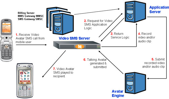 化身引擎 — 化身引擎的一個(gè)關(guān)鍵功能是接收來自應(yīng)用服務(wù)器的音頻片斷,并采用復(fù)雜的算法對語音消息和化身圖像的唇動進(jìn)行同步,處理后的結(jié)果就是一段“正在說話”的化身視頻。處理文件被發(fā)送回應(yīng)用服務(wù)器,在視頻SMS服務(wù)器存取這些視頻文件進(jìn)行播放之前,這些文件將被存放在應(yīng)用服務(wù)器上。