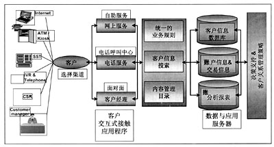 2.統(tǒng)一的客戶分析和服務(wù)管理平臺:銀行的目標是在所有同客戶接觸的渠道上(包括電話、網(wǎng)絡(luò)等),都建立起統(tǒng)一的客戶服務(wù)手段,客戶可以按照自己喜好的方式,同銀行接觸,來實現(xiàn)對不同的銀行業(yè)務(wù)的處理要求。如何科學地分析和預(yù)測客戶的行為,如何統(tǒng)一地協(xié)調(diào)管理多個客戶服務(wù)渠道,保證對客戶的一致性承諾,是銀行發(fā)展客戶關(guān)系管理所必須考慮的第二個問題。因此,銀行必須具有統(tǒng)一的客戶分析和服務(wù)管理工具,從而真正發(fā)揮銀行客戶關(guān)系管理的優(yōu)勢。