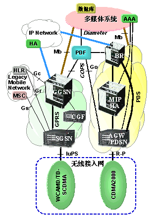PDS采用MIP技術(shù),是支持多媒體的和傳統(tǒng)的移動數(shù)據(jù)業(yè)務(wù)的網(wǎng)絡(luò)。AGW包括PDSN以及其他一些所需要的功能,提供了對各種接入網(wǎng)絡(luò)的公共接口。它提供移動IP登記和鑒權(quán),支持外部代理(FA)和分組數(shù)據(jù)傳輸,切換、AAA客戶端、QoS管理和策略執(zhí)行等功能。歸屬代理(HA)主要完成用戶當(dāng)前附著點的登記和用戶IP包的前轉(zhuǎn)兩大功能。