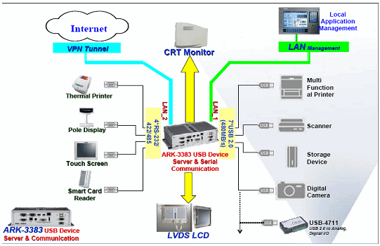 ARK-3383從設(shè)計(jì)初就定義為企業(yè)類(lèi)USB設(shè)備的接入”門(mén)戶”, ARK-3383可使使用者立即連接各種各樣的USB外圍設(shè)備或方便共有的用戶存取,數(shù)據(jù)傳輸速度可達(dá)480