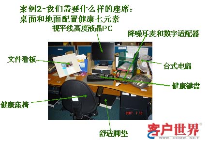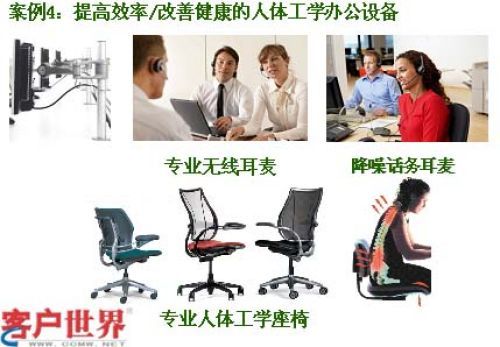 還有一個(gè)話題是健康座席怎么去配備,我主張七個(gè)元素,這個(gè)是在英國學(xué)到的,英國的話務(wù)員他們每個(gè)人都干到40歲,他們可以從20歲-40歲還沒有厭倦這個(gè)行業(yè)和崗位,他們認(rèn)為這個(gè)工作不是天天疲于應(yīng)付,或者說強(qiáng)度非常高而產(chǎn)生很大壓力的工作,他們很熱愛自己的工作,你看他們有很舒服的座椅,還有腳墊,女孩子如果注意保養(yǎng)自己身材的話,要經(jīng)常有機(jī)會(huì)站起來,保持一種站立狀態(tài)去工作,包括有一些電扇、健康的鼠標(biāo)、鍵盤、降噪耳機(jī),等等,包括視頻顯示液晶屏都可以讓客服代表享受輕松的工作感受,不會(huì)因?yàn)槠诙a(chǎn)生厭倦,這種厭倦來的非常晚,當(dāng)一個(gè)員工在一個(gè)新的崗位工作超過一年以后,在他的厭倦感來臨之前我們已經(jīng)幫他調(diào)整好這種心態(tài)和適應(yīng)力,可能他的厭倦感會(huì)一直不來,這樣的話我們就可以很長時(shí)間保有一個(gè)有經(jīng)驗(yàn)的優(yōu)秀客服代表,為公司節(jié)省很多成本,這樣的工作是非常舒服的。