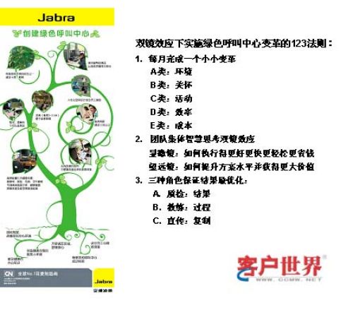 我之前在講綠色呼叫中心的時(shí)候,也是說通過這些觀察和一些提煉發(fā)現(xiàn)我們?cè)谡鎸?shí)生活中,如果從一些新的角度去看待我們現(xiàn)在的工作,其實(shí)就會(huì)發(fā)現(xiàn)環(huán)境可以在眾多的競(jìng)爭(zhēng)對(duì)手中脫胎換骨成為跟別的呼叫中心不一樣的核心競(jìng)爭(zhēng)力。