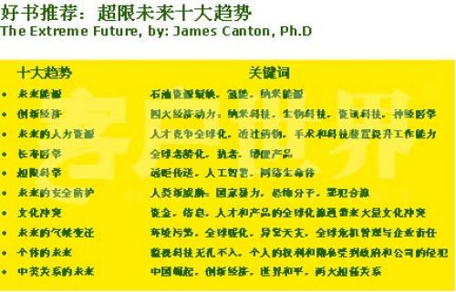 劉總(臺(tái)灣遠(yuǎn)東集團(tuán))很清楚,他是從臺(tái)灣過來的,臺(tái)灣有很多好書,我個(gè)人最喜歡是臺(tái)灣的誠品書店,每次去臺(tái)北都會(huì)去逛那個(gè)誠品書店,有很多新書,其中有一本關(guān)于未來十大趨勢(shì)的書,比如你會(huì)看到一些很新的詞匯,能源,長壽的醫(yī)學(xué),人如何活到120歲,這個(gè)在我們的年代可能就已經(jīng)實(shí)現(xiàn)了,包括你會(huì)看未來的氣候會(huì)如何變遷,然后我們未來中美關(guān)系是什么樣子的。這里面的討論對(duì)于我們來講,雖然跟我們個(gè)人生活關(guān)系并沒有巨大的影響,但是我們會(huì)想到一些我們可以比別人做得更快的、一些創(chuàng)新的東西。