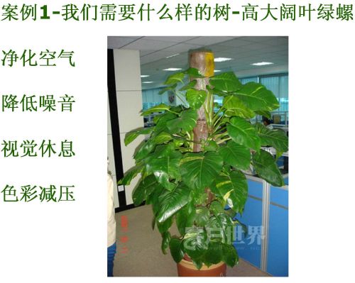 我現(xiàn)在講的是一些案例,這些案例發(fā)現(xiàn)當(dāng)我們用顯微鏡的角度去看,我們今天已經(jīng)可以做到,立刻就可以做到的事情是在話房安放很多棵樹,推薦綠蘿,這是我看到的最優(yōu)秀的一棵綠蘿,為什么說它很優(yōu)秀呢?因?yàn)樗堑蹴數(shù)模斕炝⒌氐囊豢脴,樹的好處四大功能分別是凈化空氣、降低噪音、視覺休息,用色彩減低自己的壓力。今天咱們的會(huì)議室里面只有這么一個(gè)小的樹,我相信大家一定會(huì)疲勞是很正常的,因?yàn)槲蚁脒^在家里面放這些的樹,我和我老公商量我們要放這棵樹,開始是被他批判的,雖然他現(xiàn)在還沒有完全接受,我還是會(huì)說服他去做這件事情,大家可以試一下,你的話房里面平均10個(gè)話務(wù)員放一棵樹,你會(huì)覺得他們感覺一下就會(huì)出來。