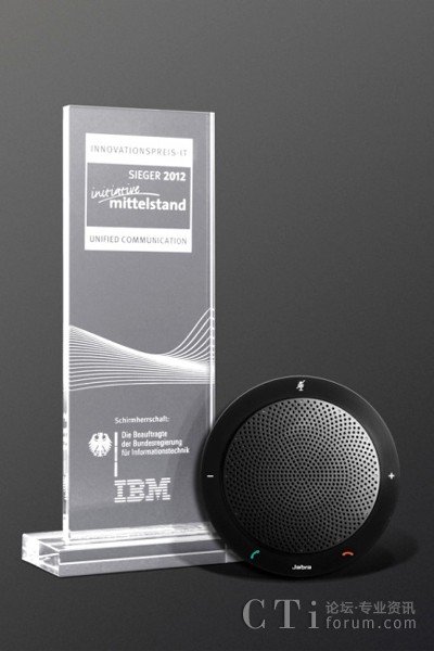 著名的信息技術(shù)創(chuàng)新獎(jiǎng)每年都會(huì)在全球最大的數(shù)字信息技術(shù)和電信解決方案博覽會(huì)CeBIT上評(píng)出。評(píng)審團(tuán)在40個(gè)類別的2500多個(gè)競(jìng)品中評(píng)定Jabra SPEAK 410為統(tǒng)一通信類的獲獎(jiǎng)產(chǎn)品。該獎(jiǎng)項(xiàng)由IBM贊助,并由德國(guó)聯(lián)邦政府的信息技術(shù)代表Cornelia Rogall-Grothe夫人頒給捷波朗。