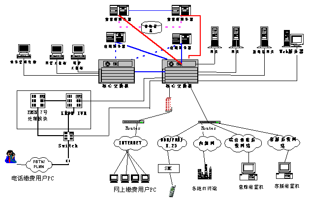 根據(jù)公司業(yè)務(wù)系統(tǒng)的組網(wǎng)方式,提供合適的解決方案,滿足需求,采用全省集中方式,具有以下特點(diǎn):省中心建設(shè)語音處理系統(tǒng)和付費(fèi)平臺(tái)業(yè)務(wù)系統(tǒng)集中在省中心;完全集中管理;完全支持全省漫游繳費(fèi);全省設(shè)備投資較少。