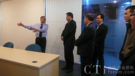 CTI論壇(ctiforum)3月4日消息(記者 張塵):2010年1月29日,昆山市副市長、花橋經(jīng)濟(jì)開發(fā)區(qū)管委會(huì)主任任雪元及招商局顧志榮副局長,王春陽等人一行赴飛翱集團(tuán)(800 TeleServices)在花橋新落成的運(yùn)營中心參觀訪問。 圖:任雪元副市長(左二)與顧志榮副局長(左三)在飛翱集團(tuán)主席黃有權(quán)(左一)