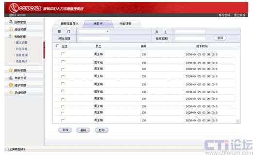 利用統(tǒng)計部分的四項內(nèi)容實現(xiàn)對座席從招聘前、招聘中和招聘后的全面管理,通過培訓(xùn)使座席擁有工作必備的知識、技能和能力,培養(yǎng)他們對企業(yè)的認(rèn)同感、歸屬感,同時,利用詳盡的考勤管理最大限度、公平合理地滿足座席內(nèi)在報酬和外在報酬上的期望和需要。