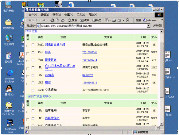 傳統(tǒng)郵件系統(tǒng)作為信息交換的手段在PC后的互聯(lián)網絡時代廣為運用,但是,郵件系統(tǒng)一個大的缺點是離不開電腦。CTI技術技術通過傳統(tǒng)的電話網絡傳遞語音信息。電話網具有廣泛普及,人人使用這一特點,這兩大技術的發(fā)展促使兩大技術的融合,那就是隨時隨地(anytime and anywhere)人們都可以通過電話,電腦使用郵件,訪問郵件。