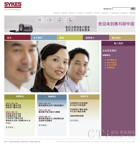 CTI論壇(ctiforum)8月8日消息(記者 潘婷婷): 為了更全方位地展現(xiàn)賽科斯中國的公司風(fēng)貌,公司網(wǎng)站(www.sykes.com.cn)經(jīng)改版后于8月4日全新登場。新網(wǎng)站在風(fēng)格、結(jié)構(gòu)、內(nèi)容等方面作了整體改進,使得整個網(wǎng)站的表現(xiàn)更清晰,界面更友好。CTI論壇報道