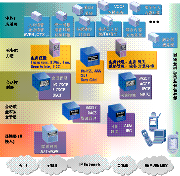 業(yè)務(wù)增強(qiáng)提供建立各種新業(yè)務(wù),融合及混合業(yè)務(wù)的公共能力。它由各種用戶數(shù)據(jù)管理和業(yè)務(wù)發(fā)布環(huán)境的解決方案所組成。用戶數(shù)據(jù)管理覆蓋了目前各移動(dòng)、固定和IMS系統(tǒng)的用戶數(shù)據(jù)管理,還提供能跨越多網(wǎng)絡(luò)、多業(yè)務(wù)和多領(lǐng)域的統(tǒng)一用戶數(shù)據(jù)管理。業(yè)務(wù)發(fā)布環(huán)境包括了電信級(jí)的IMS業(yè)務(wù)平臺(tái)和各類業(yè)務(wù)使能(serviceenabler)、業(yè)務(wù)代理(servicebroker)、智能業(yè)務(wù)網(wǎng)關(guān)(ISG),業(yè)務(wù)開發(fā)工具(SDK),策略管理(policy)等功能。它能為IMS業(yè)務(wù)和應(yīng)用所共享,并能混合各類新的、傳統(tǒng)的多媒體的業(yè)務(wù),為運(yùn)營(yíng)商或第三方業(yè)務(wù)開發(fā)商提供快速、有效的業(yè)務(wù)開發(fā)能力。