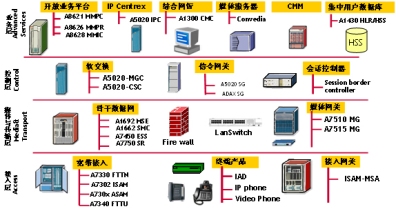 上海貝爾阿爾卡特提供完整的NGN解決方案,以軟交換為核心,綜合大容量綜合接入網(wǎng)關,與PSTN互通的中繼網(wǎng)關TGW,適合寬帶用戶(以太網(wǎng),DSL或者HFC)接入的IAD或者IP電話,多媒體通信IP視頻終端等設備。方案提供了覆蓋所有接入方式的綜合業(yè)務,既考慮了網(wǎng)絡的繼承,也滿足網(wǎng)絡演進和發(fā)展的需要。