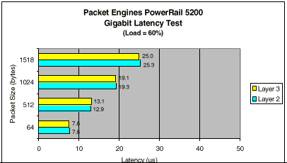 參看以下第三方評測機(jī)構(gòu)Strategic Networks(http://www.snci.com)測試OmniCore5000交換機(jī)得到的L2(橋接)和L3(路由)的時延,64byte數(shù)據(jù)包的時延只有7.6微秒。