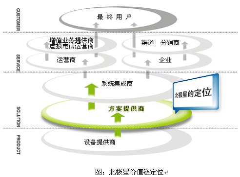 北極星軟件以技術領先見長。北極星軟件的iAfx ( Intelligent Application Frameworks ) 是一個融合語音、圖像、消息、多媒體數(shù)據(jù)的分布式通信應用架構,為業(yè)務處理和應用開發(fā)提供了全新的概念和良好的環(huán)境。iAfx?體系既充分考慮了對現(xiàn)階段運營商網(wǎng)絡和基礎構架的支持,又兼顧了網(wǎng)絡和通信技術向下一代發(fā)展的必然趨勢。 基于iAfx?架構,北極星軟件開發(fā)的系列VoIP增值業(yè)務解決方案既能適應現(xiàn)有網(wǎng)絡環(huán)境,又能向下一代網(wǎng)絡(NGN)平滑過渡。
