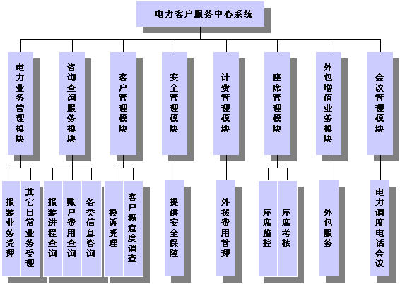 用戶可以通過電話、E-Mail、Web等多種手段來完成電力報修、電費催繳、電費代繳(銀行和供電局的自動轉(zhuǎn)賬業(yè)務(wù))等各種電力日常業(yè)務(wù)。客戶在提出申請一定的時間內(nèi)會收到受理部門的電話或E-Mail回復(fù)。