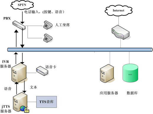 jTTS在12320中的應(yīng)用主要表現(xiàn)在查詢結(jié)果的語音返回和服務(wù)信息的發(fā)布上。只要將捷通TTS服務(wù)器集成到現(xiàn)有的IVR系統(tǒng)中,并且在IVR服務(wù)端設(shè)置好預(yù)讀出的文本即可。眾所周知,“12320”公益服務(wù)熱線需要提供海量關(guān)于我國公共衛(wèi)生相關(guān)法律法規(guī)、各種重大疾病的預(yù)防保健知識的宣傳和咨詢服務(wù),如果采用傳統(tǒng)人工座席或請專業(yè)播音人員錄音,費(fèi)時費(fèi)力,且投入較大。用語音合成技術(shù)(TTS)來解決,用戶提交查詢請求,IVR服務(wù)器收到請求后會向其他應(yīng)用服務(wù)器提交,當(dāng)IVR得到查詢結(jié)果后,將文本形式的查詢結(jié)果交給jTTS服務(wù)器,jTTS服務(wù)器返回查詢結(jié)果的語音形式,最終語音在坐席上播放,用戶就可以聽到所要查詢的信息(如圖)。這樣市民可以24小時撥打熱線,查詢各方面的內(nèi)容,不受時間限制,既節(jié)約政府開支,為民辦實(shí)事,而且在最大程度上提高了辦事效率,樹立了良好的政府形象。
