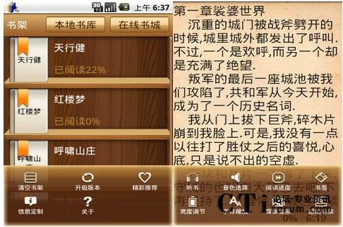 只要將捷通華聲出品的聽書軟件安裝在Android1.6以上系統(tǒng)的智能手機(jī)中,即可隨心暢讀,捷通聽書是捷通華聲人機(jī)交互(HCI)技術(shù)的創(chuàng)新之作,它運(yùn)用嵌入式語音合成技術(shù),無需人工進(jìn)行預(yù)置錄音,無論什么文體,都可進(jìn)行順暢的海量閱讀,這樣的海量閱讀并不會(huì)給手機(jī)的存儲(chǔ)空間帶來負(fù)擔(dān),現(xiàn)在就可在官網(wǎng)中http://www.hcicloud.com/xiazai.asp?id=2&classtitle=手機(jī)伴侶&clid=3 下載捷通TTS組件,只要電子書的格式為純文本文件TXT格式,便可順利進(jìn)行語音朗讀。您可以選擇男聲、女聲和寶寶聲,音質(zhì)清晰可媲美真人發(fā)聲,聽書已不再成為難事。捷通聽書軟件外觀整體設(shè)計(jì)古樸典雅,仿佛真能聞到書香的氣息,這樣的視聽氛圍會(huì)立刻帶你進(jìn)入到聽書的境界中。獨(dú)特的翻頁(yè)模式更具人性化的設(shè)計(jì),讓人機(jī)交互更像真正意義上的翻頁(yè)讀書,無論是聽書,還是看書,都給人帶來美好的體驗(yàn)。另外,捷通華聲的語音合成技術(shù)還可提供多種音色的備選方案,可根據(jù)用戶的需求進(jìn)行選用,同時(shí)支持英語、日語、俄語、德語、意大利語等多個(gè)語種的語音合成技術(shù),為用戶提供真正多方位的服務(wù)。近日,捷通聽書還在BTV《在線E起來》欄目中精彩亮相,節(jié)目中的多項(xiàng)測(cè)評(píng)使這款軟件表現(xiàn)不俗,捷通聽書軟件再次成為智能手機(jī)軟件應(yīng)用中的新亮點(diǎn)。