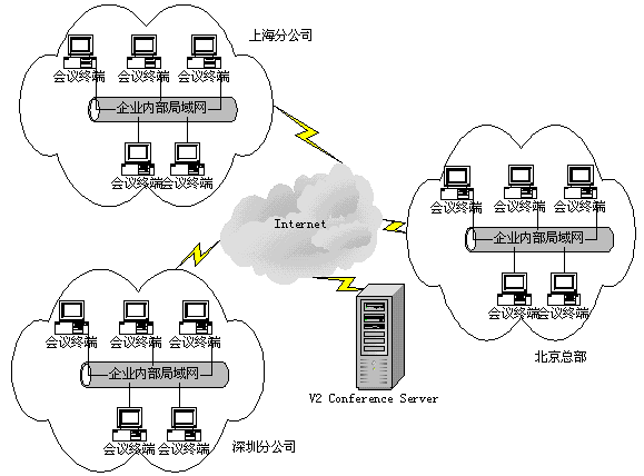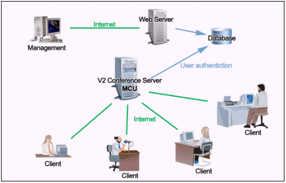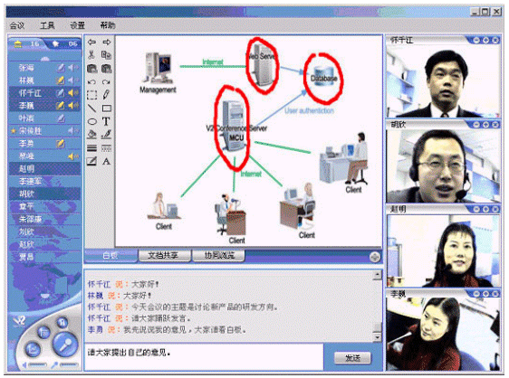 V2 Conference可以利用普通的PC機、標準的視頻攝像頭、耳機和麥克風,通過Internet或者是局域網進行會議。與傳統(tǒng)的需要專用的服務器和硬件支持的視頻會議相比,企業(yè)無需投入高昂的成本,就可以實現(xiàn)高質量的遠程會議。同時,V2 Conference還提供了遠程會議管理的功能。