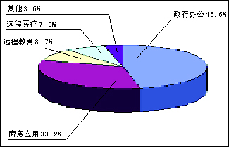 其中,視頻會(huì)議業(yè)務(wù)是目前階段視頻通信發(fā)展的重點(diǎn),其主流是基于IP協(xié)議的視頻會(huì)議技術(shù)。目前的市場(chǎng)特點(diǎn)是硬件視頻會(huì)議已經(jīng)被接受,軟件視頻會(huì)議正在成長(zhǎng)。但是競(jìng)爭(zhēng)格局分散,仍然處于“戰(zhàn)國(guó)時(shí)代”,還沒(méi)有一家公司處于絕對(duì)的統(tǒng)治地位。當(dāng)前視頻會(huì)議的主要應(yīng)用場(chǎng)所分布如圖1。