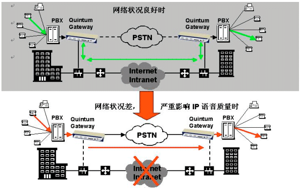 。。Quintum TASQTM專利技術(shù)可動(dòng)態(tài)監(jiān)控網(wǎng)絡(luò)流量狀況,在任何時(shí)刻當(dāng)網(wǎng)絡(luò)頻寬低于企業(yè)預(yù)設(shè)門限值,以致于無法負(fù)荷企業(yè)所要求的語(yǔ)音品質(zhì)時(shí),語(yǔ)音回路將自動(dòng)切換到傳統(tǒng)