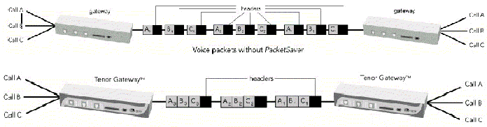 saverTM會(huì)將同一時(shí)間通話中將同一個(gè)目的地的所有語(yǔ)音IP包的包頭部分共享,這樣可以節(jié)省許多頻寬,并加快設(shè)備運(yùn)作的速度。經(jīng)過實(shí)驗(yàn)證明:只需三方電話就可改善40%的頻寬使用效率。此特色讓Quintum