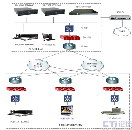 因為集團的部分二級單位在前期已經構建了標清的視頻會議系統(tǒng),而且使用的視頻終端的類型非常多,有Polycom VS系列終端、Polycom