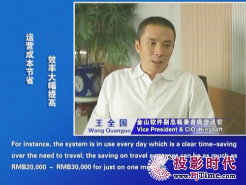 “以前從北京出發(fā)參加一次深圳的會議,往返至少要耗費6小時,而且往返機票也是一筆不小的開支。采用新系統(tǒng)后,公司出差的機會明顯減少了,即使粗略統(tǒng)計,節(jié)省的成本也是相當可觀的。另外,倡導企業(yè)公民責任是全社會共同關注的話題,金山公司也在通過如采用視頻通信系統(tǒng)這樣的行動積極響應‘綠色企業(yè)’的號召!