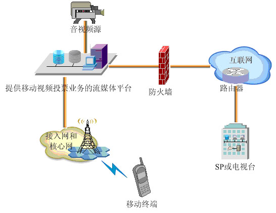 從現(xiàn)在形形色色的電視節(jié)目都在進行的手機短信投票,人們尤其是電信運營商和SP看到了一個巨大的手機投票市場空間。圖1 移動視頻投票系統(tǒng)示意圖
