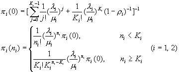分別為語音自動應(yīng)答系統(tǒng)與人工服務(wù)系統(tǒng)的平穩(wěn)狀態(tài)分布。