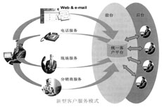 在以客戶服務(wù)中心為前臺的新型服務(wù)模式中,統(tǒng)一了客戶服務(wù)的平臺。客戶只需要和客戶服務(wù)中心打交道,所有的問題都可以通過客戶服務(wù)中心解決。用戶只需要打一次電話即可解決所有問題!同時,客戶服務(wù)中心作為一個信息島,統(tǒng)一與企業(yè)內(nèi)部各個部門、資源進(jìn)行溝通,以方便解決用戶的所有問題。