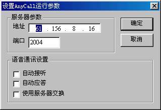 AnyCall還為用戶提供了一些個(gè)性化的設(shè)置,點(diǎn)擊AnyCall的設(shè)置按鈕。就會(huì)彈出一個(gè)對(duì)話框在里面有服務(wù)器參數(shù)和語(yǔ)音通訊設(shè)置兩個(gè)設(shè)置項(xiàng),如圖4所示。服務(wù)器參數(shù)主要是設(shè)置AnyCall的語(yǔ)音交換服務(wù)器的IP地址和端口,以便進(jìn)行更好的語(yǔ)音傳輸。在語(yǔ)音通訊里面可以設(shè)置自動(dòng)應(yīng)答,自動(dòng)接聽(tīng)。這樣免去了每次來(lái)電都要去點(diǎn)接聽(tīng)按鈕的麻煩。