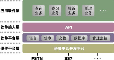 1.Client/Server結構的微機網絡技術——在這種系統(tǒng)中,呼叫處理和語音處理的功能集中在語音工作站中,系統(tǒng)的資源控制、數據庫系統(tǒng)在服務器中實現,業(yè)務生成、改動則由專門的應用處理工作站完成。整個系統(tǒng)是一個Client/Server結構的微機網絡。
