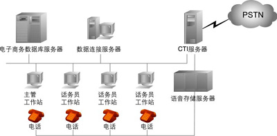 CTI服務器是一臺與交換機相聯、通常內插CTI板卡的計算機,它通過接收來自交換機的事件/狀態(tài)消息和向交換機發(fā)送命令,實現計算機對整個呼叫中心的全面管理。同時,CTI服務器屏蔽了交換機與計算機之間復雜的通信協議,向上提供統(tǒng)一的編程接口,使開發(fā)人員能方便地開發(fā)呼叫中心的各類應用。CTI服務器一般由電話服務單元、安全數據庫和電話服務庫等組成,實現同步語音與數據的傳送、協調語音與數據的轉移、智能路由等功能。