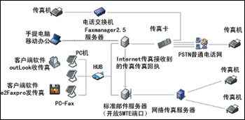 有些人認為,傳真服務(wù)器只適合于適中的傳真量,在大型運用傳真的情況下,還是傳統(tǒng)的傳真可靠。其實,這樣的想法是不正確的。事實勝于雄辯,目前,包括無錫小天鵝集團銷售公司、上海標準件進出口公司、中外運山東公司等都在使用上海?档膫髡娣⻊(wù)器。這些大型企業(yè)用戶認為,傳真服務(wù)器不但能夠經(jīng)得起海量傳真的考驗,而且,解決了傳統(tǒng)傳真機不方便解決的群發(fā)、傳真?zhèn)浞莸裙δ。FAXmanager目前的版本是Ver2.5,它首先是一個標準的局域網(wǎng)傳真服務(wù)器Fax Server,客戶端提供了一個打印驅(qū)動方式的傳真發(fā)送工具e2faxPro,局域網(wǎng)用戶可以將所有Windows環(huán)境下的文件輕松轉(zhuǎn)換成傳真格式發(fā)送出去,對于接收而言,支持DTMF虛擬傳真分機識別。Faxmanager2.5傳真管理系統(tǒng)(卡版)原理圖