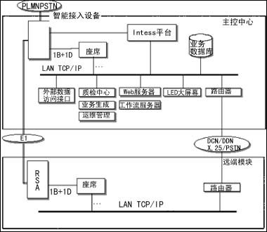 遠端座席通過RSA方式拉遠,通過路由器和主控中心組成廣域網來共享主控中心的數(shù)據(jù)。其它設備,如智能接入設備、服務器、數(shù)據(jù)訪問接口等都放在主控中心。