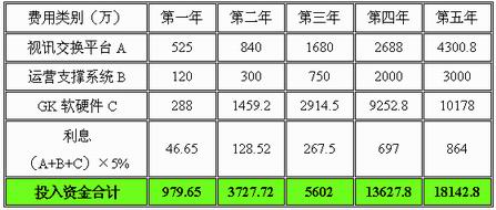 表五 網通商用視訊系統(tǒng)建維費用