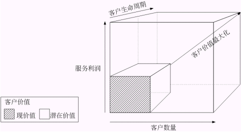 圖二 : 客戶價值與客戶數(shù)量、服務(wù)利潤和客戶生命周期的關(guān)系