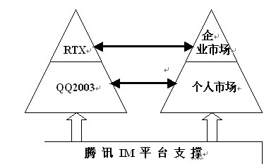 3、超越競(jìng)爭(zhēng)的市場(chǎng)策略。從QQ2003到RTX,標(biāo)志著騰訊對(duì)IM市場(chǎng)的獨(dú)特認(rèn)識(shí)和IM平臺(tái)與服務(wù)提供商的獨(dú)特定位,這是一種縱向一體化的發(fā)展戰(zhàn)略,是建立在對(duì)IM市場(chǎng)需求和發(fā)展基礎(chǔ)上戰(zhàn)略選擇,是一種超越競(jìng)爭(zhēng)的市場(chǎng)策略。