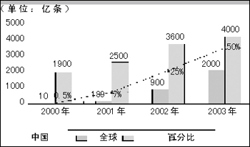 中國(guó)短信發(fā)送量對(duì)比全球發(fā)送量