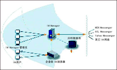 除了這些產(chǎn)業(yè)巨頭以外,巨大的IM管理市場也培育了許多專業(yè)的IM管理廠商。這些廠商的產(chǎn)品可以外掛至大公司的IM服務(wù)平臺,從而為企業(yè)用戶提供IM管理解決方案。IMlogic就是這樣一家公司,它的IM Manager產(chǎn)品可以管理來自微軟、雅虎、IBM、AOL以及Jabber等等公司的IM平臺。