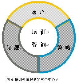 當(dāng)然,提升效果對(duì)于培訓(xùn)咨詢服務(wù)提供商來說是一個(gè)很高的要求,不但要有專業(yè)運(yùn)營(yíng)經(jīng)驗(yàn)和精深的行業(yè)知識(shí),還需要從"以問題為中心"的思路過渡到關(guān)注"問題、客戶、策略"三個(gè)中心(如圖6 所示)。