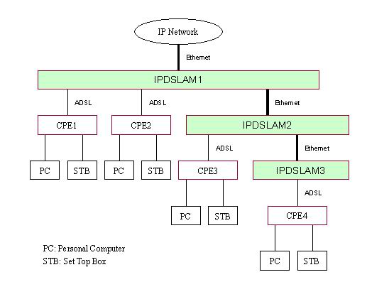 1 Video over ADSL 技術概述圖1. IPDSLAM設備所處網絡結構