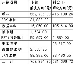 某企業(yè)傳統(tǒng)方案與融合方案年運(yùn)營(yíng)開(kāi)銷對(duì)比