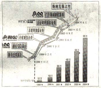 正是憑借著這些優(yōu)勢,即時通信吸引聚集著一些忠誠用戶,并開始搭建網(wǎng)絡(luò)廣告、無線增值等一系列各種潛在的交易平臺?梢韵胂,一個絕佳的聊天窗口同時也是一個方便的交易窗口和暢通的付費(fèi)入口,即時通信正在摸索一條前所未有的盈利模式。有專家指出,經(jīng)過近5年的曲折前行,即時通信的盈利模式將在2005年逐步明確。以騰訊QQ為例,我們來剖析一下即時通信的盈利模式是如何由模糊走向清晰的。從1999年2月QQ發(fā)布到2000年5月,QQ迅速聚攏了10萬用戶。2000年8月,騰訊公司同廣東移動合作,僅僅用了一年就扭虧為盈,實(shí)現(xiàn)了1000萬人民幣的純利潤。
